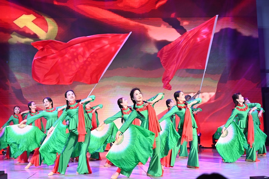 离退休工作人员带来的歌舞表演《映山红》,婉转动人的歌声,真挚动人的表演真切描摹出老一辈工作者的那段历久弥新的红色记忆,尽显爱国爱党热情。