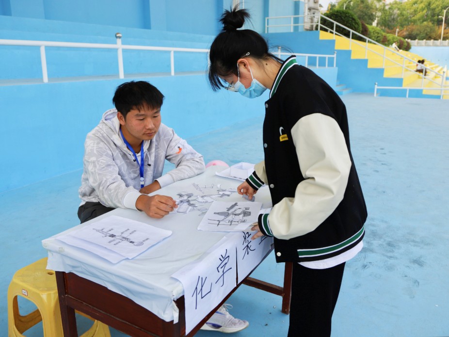 活动现场布置桌子若干,本次活动分为化学分子模型设计和化学趣味小游戏两部分,现场展出化学分子模型作品若干,充分展现学生的想象力、创造力和动手能力。