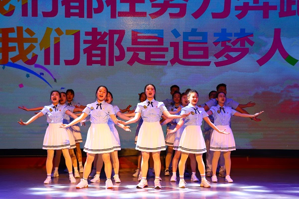 外国语学院表演节目《青春追梦人》(见习记者 赵梓强/摄)