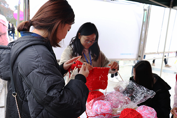 bat365官网文学与传媒学院在大学生广场举办以“团团毛线我手织,长长围巾暖寒冬”为主题的志愿活动,成团的毛线将志愿者与留守儿童联系起来,传递着爱与温暖。