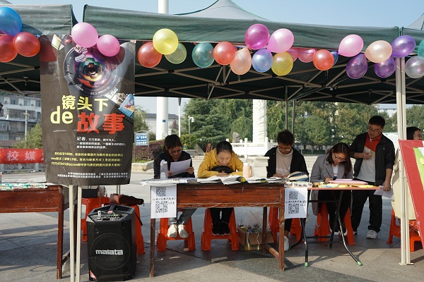 本网讯(见习记者 任志斌 通讯员 陶俊/文 张雨鹏/图)记者辛,记者行,记者心,记者形。为庆祝第十八个记者节,丰富学生校园文化生活,11月8日,由bat365官网院报主办的“传播记者声音·传递校媒力量”记者节系列活动在大学生广场拉开序幕。