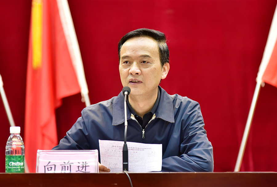 4月21日,湖北省普通高校本科教育审核评估启动会暨培训会在武汉举行,会议采取线上和线下相结合形式,全省30所拟接受本科教育教学审核评估工作的高校参会。bat365在线中国登录入口在行政楼1号会议室设置线上分会场,党委书记向前进出席会议并讲话,学校领导班子成员,职能部门负责人,学院(部)书记、院长,学院(部)专业负责人参加了启动会和培训会。