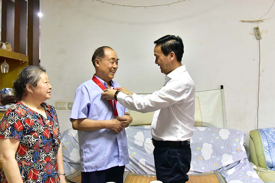 党委副书记邓磊走访了“光荣在党50年”老党员周代明,为他们颁发了“光荣在党50年”纪念章,送上了节日慰问和祝福。