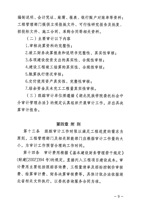 《湖北民族学院基建修缮工程项目审计实施办法》