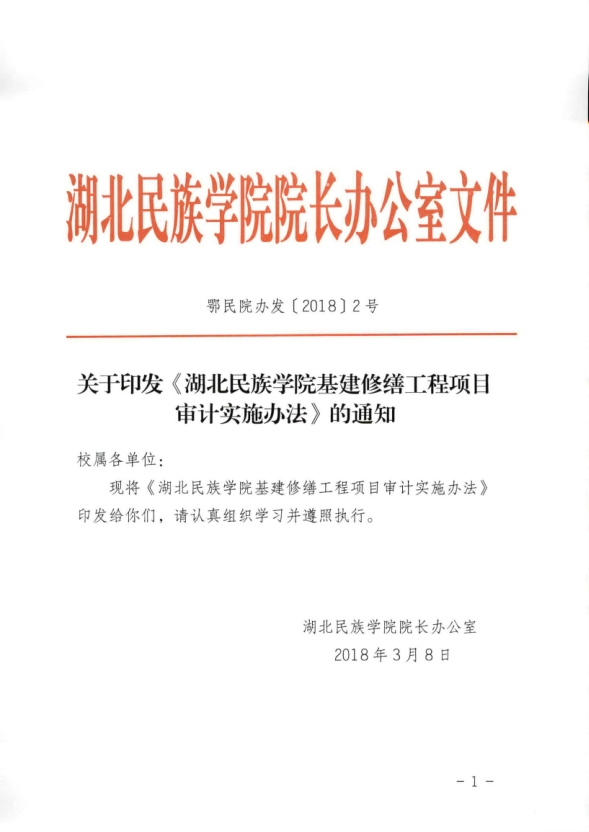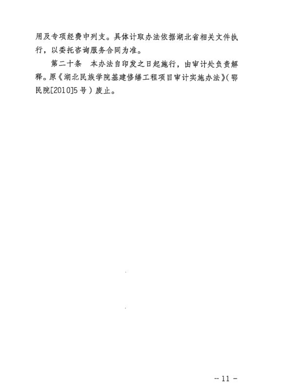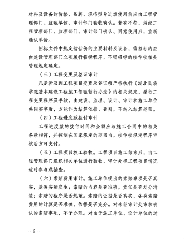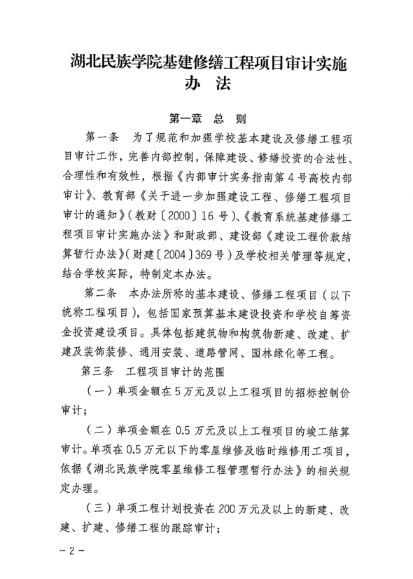 《湖北民族学院基建修缮工程项目审计实施办法》