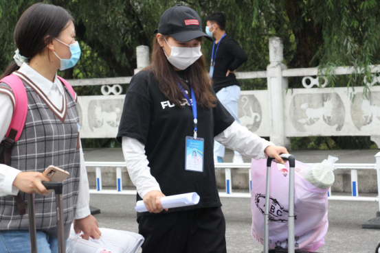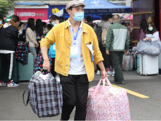 经管院团总支书记张典帮忙搬运行李 苏曈/摄