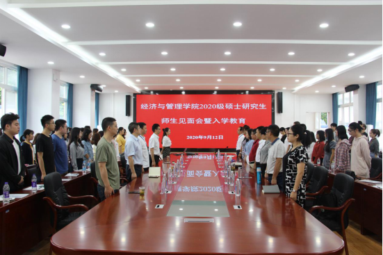 本网讯(记者 杨颖 丁旭/文 林惠珠 刘玉琳/图 )2020年9月12日,我院在经管楼会议室开展2020级硕士研究生师生见面会暨入学教育。bat365在线中国登录入口教务处处长、教授谭世明,新材料与机电工程学院党总支书记、执行院长陈世强,信息工程学院副教授贺刚,我院党委书记、教授张新平,副院长朱廷辉,会计系主任卢秋声,以及硕士研究生导师应邀出席,2020级全体研究生60余人参加会议,学生建设科科长冉瑞恩担任主持。