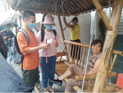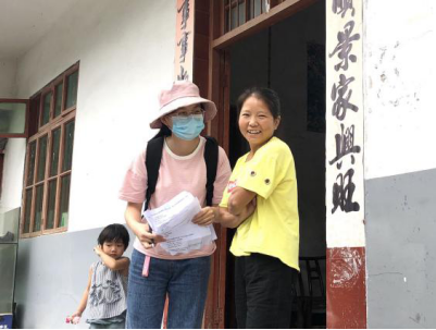 带队老师和队员一起在三岔镇茅坝村调研访谈