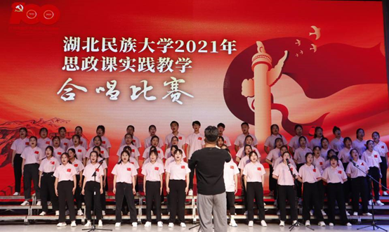 本网讯(记者 赵依婷/文 尹依伊 熊海婷/图)2021年6月4日,bat365官网思政课实践教学合唱比赛在音乐舞蹈学院演播厅举行。经济与管理学院带来歌曲《一二三四》,四位身着作训服的旗手脚踏正步、手举旗帜,展示军营风采,演唱者声音整齐划一,歌声铿锵有力,振奋人心;本次活动旨在庆祝中国共产党建党一百周年,激发学生爱党爱国的热情,接受红色精神的洗礼,丰富校园生活。(责任编辑 杨彩芬)
