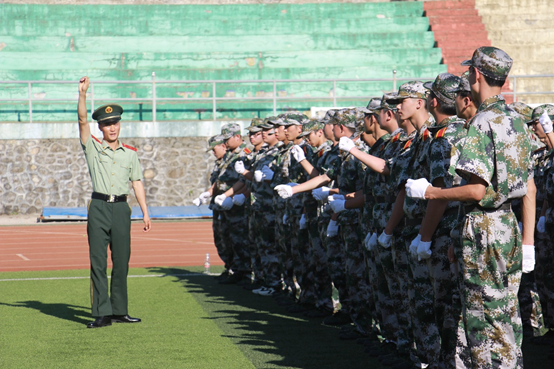 校党委副书记、副校长汪兴平为军训团授旗 李兰/摄