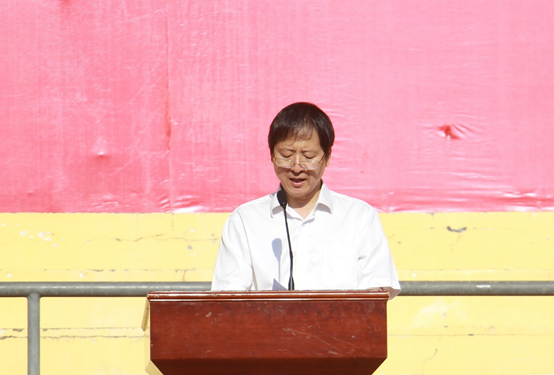 校党委常委、副校长祝建波宣读成立军训团文件 李兰/摄