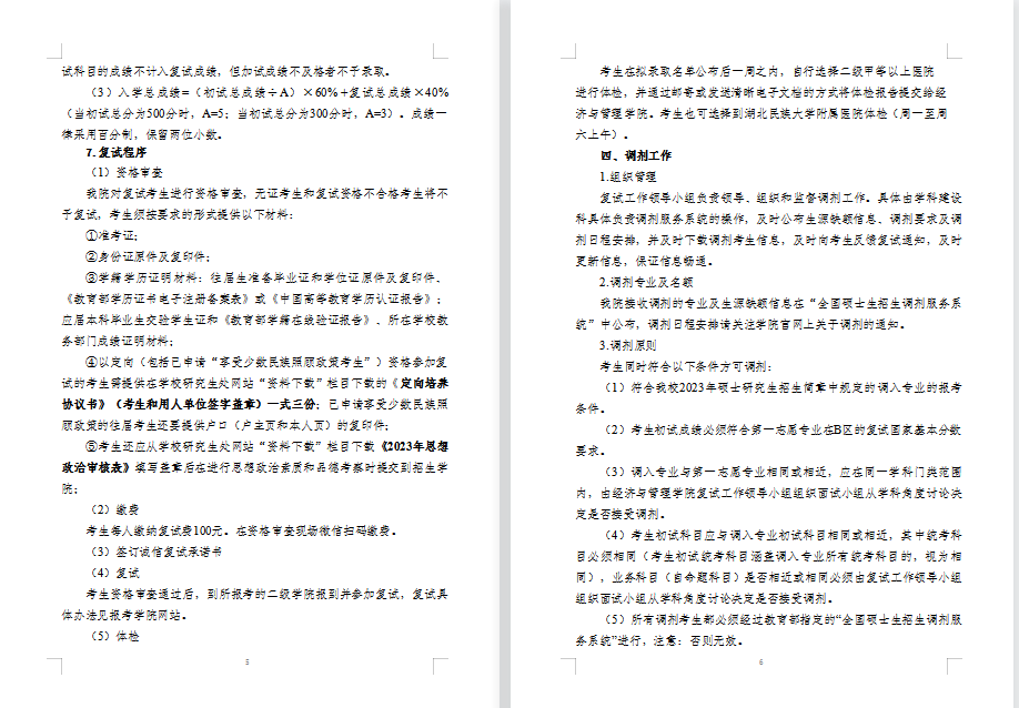 经济与管理学院2023年硕士研究生复试录取工作实施细则