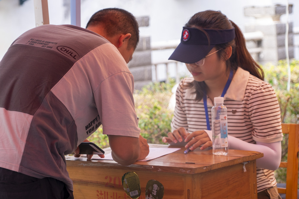 志愿者指导家长填写来访表 周隆宇/摄