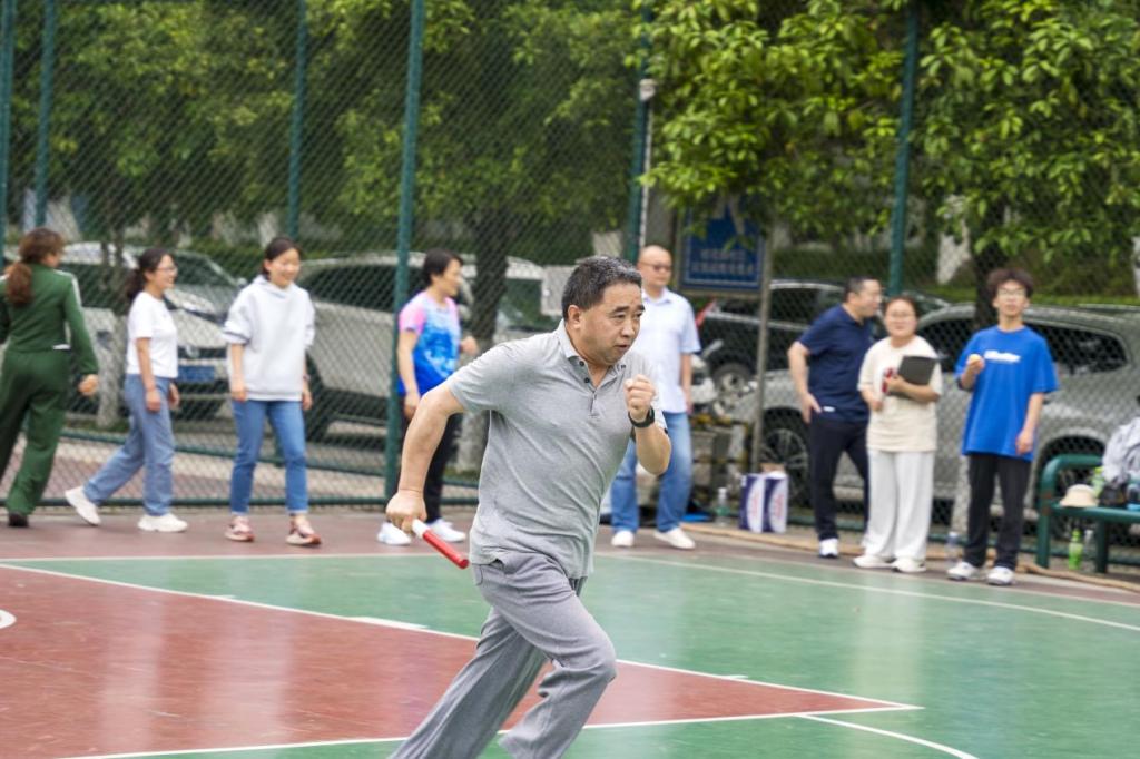 运动会共有陆地龙舟、拔河、跳绳接龙、动感颠球、五十米趣味迎面接力五个竞赛项目。在陆地龙舟比赛中,各参赛队伍配合默契,奋勇争先,展现出了教职工们的团结协作精神。拔河比赛中,双方队员紧握绳索,拼尽全力,现场气氛紧张而激烈。跳绳接龙和动感颠球项目更是考验了教职工们的协调性和反应能力,让大家在欢笑中感受到了运动的魅力。五十米趣味迎面接力赛则将整个运动会推向了高潮。参赛队员们精神抖擞,全力以赴,为学院的荣誉而拼搏。观众们的加油声和欢呼声此起彼伏,现场气氛热烈而欢快。