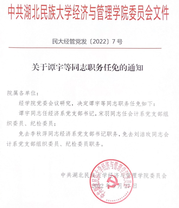 : 关于经济与管理学院基层教学组织部分负责人调整的通知