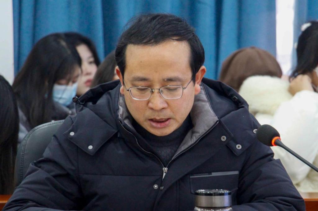 张新平讲话。他首先对“专业”二字进行解读,表示专业就是围绕社会经济发展培养的专业性人才。他希望学生努力掌握专业知识,同时要善于将所学的理论知识运用到实践中。他建议学生应正确看待自己的专业,并对未来抱以美好的期望。