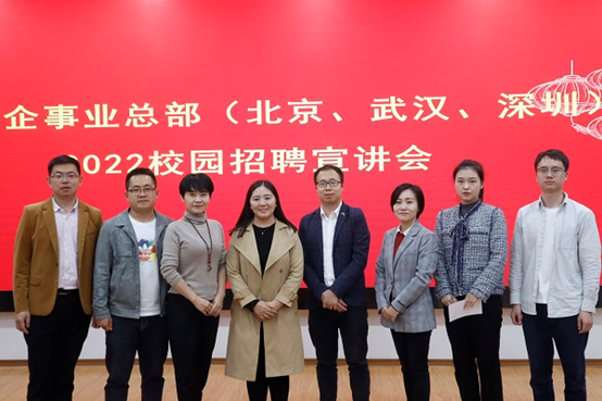 本网讯(记者 王冰雨 祝悦/文 熊海婷/图)2021年10月15日,立信央企事业总部2022校园招聘宣讲会在经管楼附303会议室开展。经济与管理学院党委副书记张姣蓉,立信央企事业总部湖北分所人力资源部经理王倩、审计部部门副经理陈智学、资深人力资源专员曾贞、人力资源部专员余湛帆,经济与管理学院学科建设科科长冉瑞恩、MPAcc中心常务副主任向浩、学生科科长曹骞、学生科老师向绍阳,出席宣讲会。