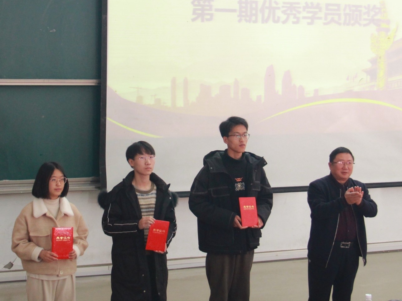 第一期优秀学员代表陈瑜康发言。他认为,学生应积极学习马克思主义中国化最新成果,成为马克思主义理论实践创新成果的继承者和发扬者,完成时代赋予青年的使命,成长为中国革命、建设和改革的坚实力量。本期学员代表陈荣辉发言。他以当今社会环境为背景说明开展青年马克思主义培养工程的必要性,并鼓励学生不断充实自己,以实际行动实现人生价值,成长为中国特色社会主义合格、可靠的接班人。