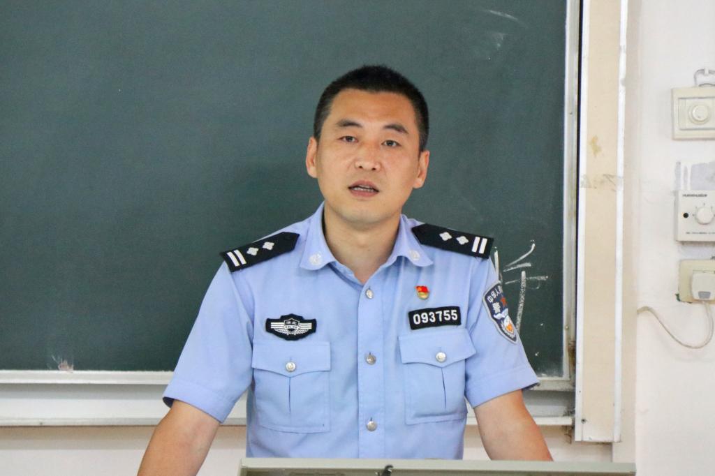 本网讯(记者 尚仁毅/文 毛庆颖/图)2023年6月1日,防范金融诈骗宣传讲座在经管楼1302教室举行。恩施市舞阳坝派出所副所长王烁担任主讲人。