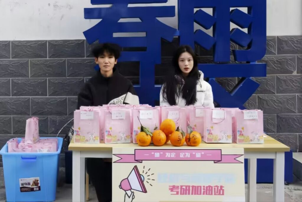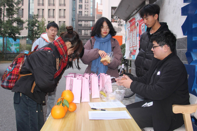 本网讯(记者 尚仁毅/文 记者 叶然 见习记者 蔡甜甜 郑诗彤/摄)研究生考试进入倒计时,为缓解考研压力,鼓励考研学子继续保持饱满的学习热情,增强考研信心,经济与管理学院举办考研送温暖活动。学院领导、辅导员、研究生代表及学弟学妹们送来真诚的鼓励与祝福,叮嘱同学们保持良好的心态,不畏难,不放弃,为最后一战最好充足的准备,交出一份满意的答卷。同时,在一站式学生社区-春雨社区设立考研加油站,为考研学子送上考研加油包,礼包里面包含橙子、暖宝宝、口罩以及老师亲自写下祝福语的卡片等,寓意在寒冷的冬季送来温暖,祝福考研学子心想事“橙”,“橙”功上岸。(责任编辑 尚仁毅 审核 覃杰)