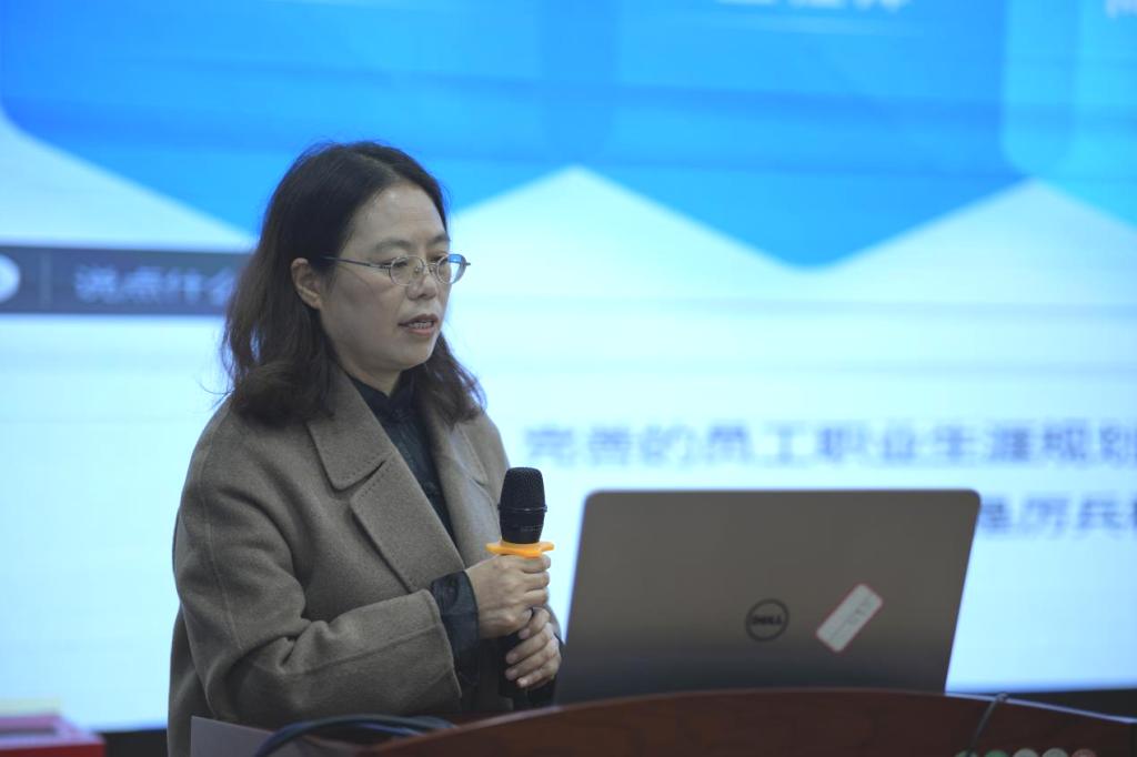阮文璐讲话。她表示,人力资源发展具有广阔空间,希望学生注重个人职业发展,充分了解自身需求,选择合适岗位。