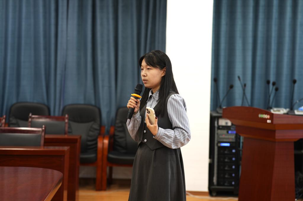 刘洁玫讲话。她首先介绍了本次活动的目的和意义,强调了优秀毕业生经验交流对于在校学生成长和发展的重要价值。并依次介绍优秀毕业生代表基本情况。