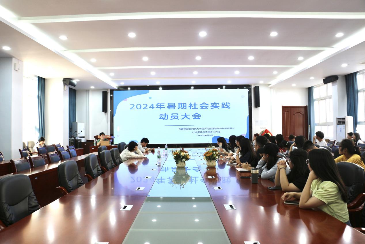 本网讯(记者 刘庆怡/文 熊邓炀/图)2024年6月5日,经济与管理学院2024年暑期社会实践动员大会在经管楼附303会议室举行。经济与管理学院团总支书记唐桢坤,MPACC教育中心主任游宇,学生科辅导员覃雨、亚克甫应邀出席,各班社工委员及团支书参加本次大会。