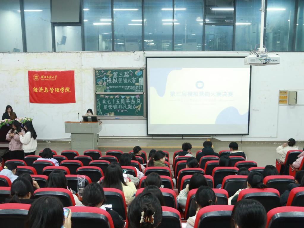本网讯(记者 刘庆怡 陶君然 见习记者 陈诗淇 冯柯嘉/文 记者 毛莉 见习记者 谭元媛/图)2024年11月21日,经济与管理学院联合“一站式”学生社区以“乘七十五周年东风 展营销非凡魅力”为主题的第三届模拟营销大赛决赛在修远楼5B403报告厅举行。经济与管理学院团总支书记杨睿、学生科辅导员唐桢坤应邀出席本次大赛并担任评委。