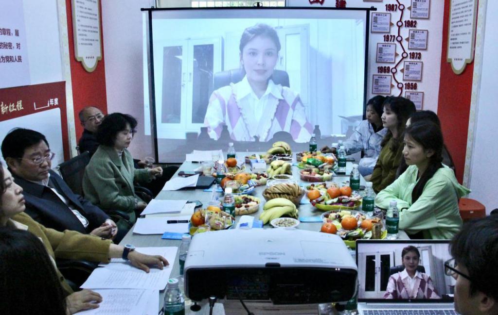 优秀校友代表热依汉古丽以线上视频方式作经验分享。热依汉古丽现就职于河南省商务厅,她回顾自己的求学历程,讲述在学习和工作中遇到的困难挑战与应对策略。同时,她强调持续不断地学习与自我提升至关重要,并鼓励学弟学妹们在学习专业知识之余积极参与社会实践,锻炼独立思考、解决问题的能力。