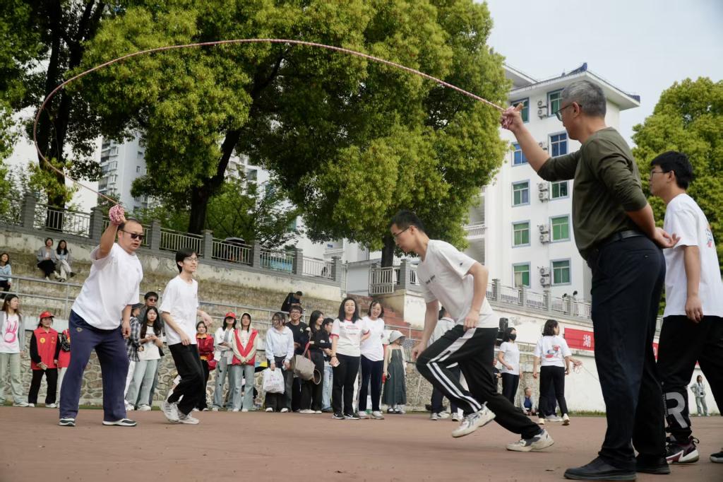 比赛现场气氛热烈,经济与管理学院教职工积极投入各个项目,展现出高度的活力与团队协作精神。在跳绳接龙项目中,教职工身姿矫健,快速穿梭跳跃,动作流畅自然,展现出了良好的节奏感和协调能力,用默契的配合不断刷新着成绩;在陆地龙舟项目中,教职工步伐一致,以沉稳有力的脚步和坚定必胜的决心向着终点奋力迈进;在动感颠球项目中,教职工们围圈而立,双手紧握鼓绳,在不断地尝试与调整中,努力让球保持跳动,彰显出高度的团队协作意识;在毽球接力项目中,教职工们灵活地变换着脚步,时而轻盈跃起,时而迅速转身,他们的脸上洋溢着笑容,享受着运动带来的快乐与挑战。