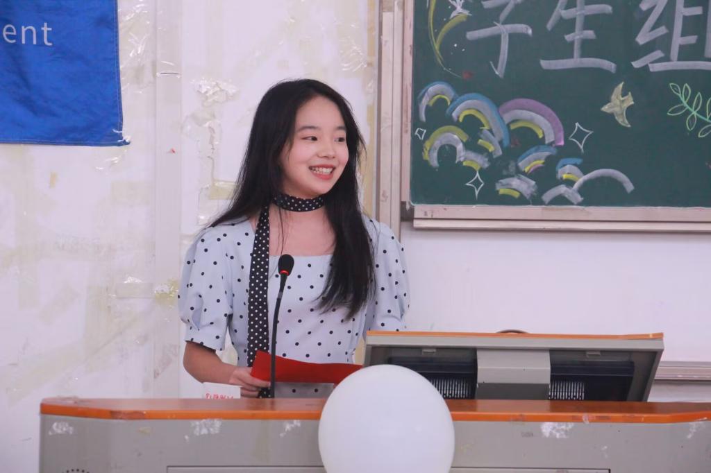 刘姝彤发言。她对上一届学生干部的辛勤付出及教师的悉心指导表示诚挚的感谢,并希望组织成员未来能齐心协力,以饱满热情和切实行动,共同打造一个充满温情与力量的团队组织。