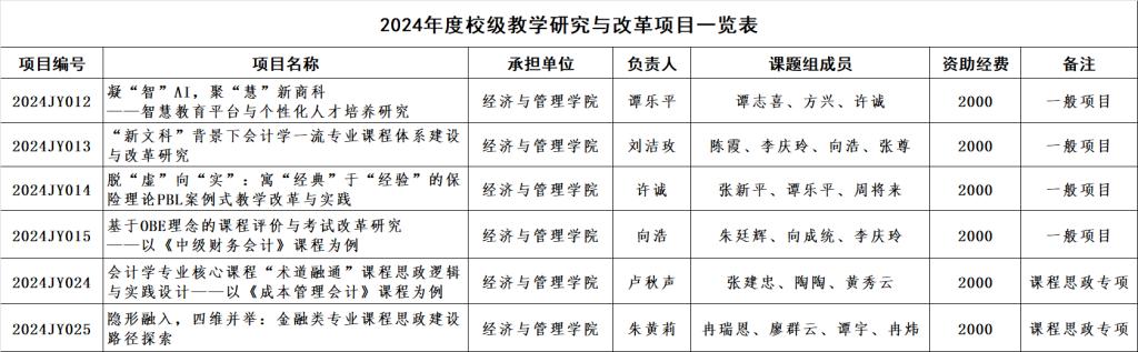 2024年度校级教学研究与改革项目一览表