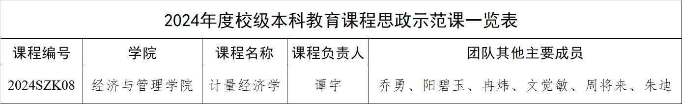 2024年度校级本科教育课程思政示范课一览表
