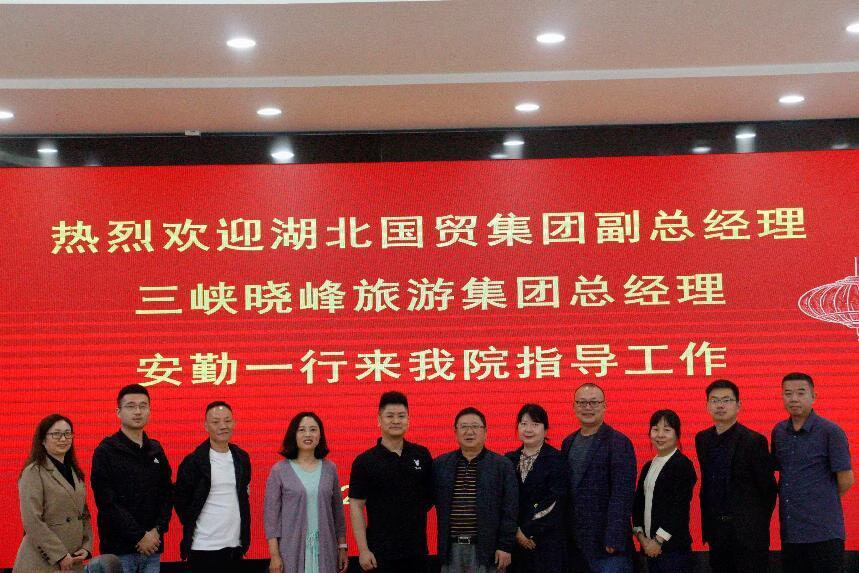 本网讯(记者 杨兆佳 穆语恒/文 毛庆颖/图)2023年5月23日,湖北国贸集团副总经理、三峡晓峰旅游集团总经理安勤一行到经济与管理学院洽谈合作事宜,并在经管楼附303会议室举行会议。湖北国贸集团副总经理、三峡晓峰旅游集团总经理安勤,三峡晓峰旅游集团副总经理毛越康、吴燕凌、陈丽华,财务总监赵希阳,市场总监王军。经济与管理学院党委书记陈霞,院长张新平,学生科科长曹骞,旅游系主任王俊平应邀出席。经济与管理学院副院长谭志喜担任主持人。