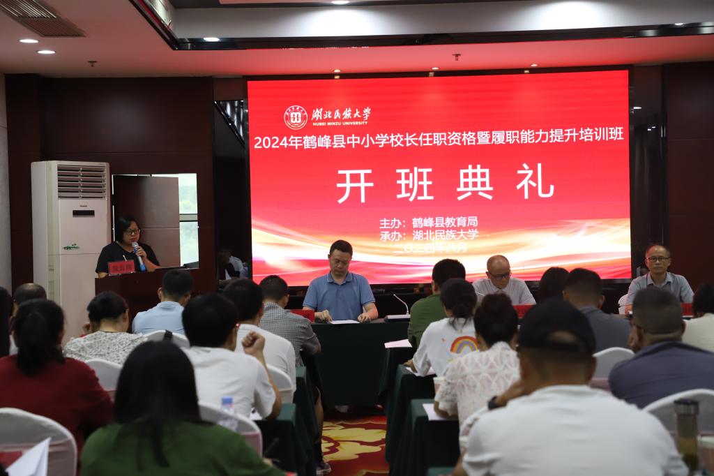 此次培训由鹤峰县教育局主办,bat365在线中国登录入口承办,学校继续教育学院具体组织实施。培训旨在引领鹤峰县中小学教育管理者专业能力提升,为鹤峰教育高质量发展提供高素质人才支撑。培训将以“引领学校高品质发展”为主线进行综合设计,围绕“规划学校发展与学校规范化管理”“领导课程教学与促进教师成长”“学校文化建设及教育领导者心理调适”三大主题展开。培训共15天,分集中研修、省外研学、总结提升等三个阶段实施,本次培训为集中研修阶段,共6天,后两个阶段的培训将在2024年底前完成。