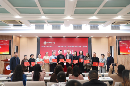 (来源:考试培训科 审核:刘贤锋) 11月12日,“省培计划(2023、2024)”——荆楚名师名家工程(恩施州名师名校长)培训项目结业典礼在bat365官网德智楼远程教学观摩室举行。这标志bat365官网承训的该项目圆满结束。bat365在线中国登录入口继续教育学院来国红院长、刘贤锋副院长出席典礼。典礼由继续教育学院考试培训科杨斌科长主持,47位名师名校长学员和项目组工作人员参加典礼。