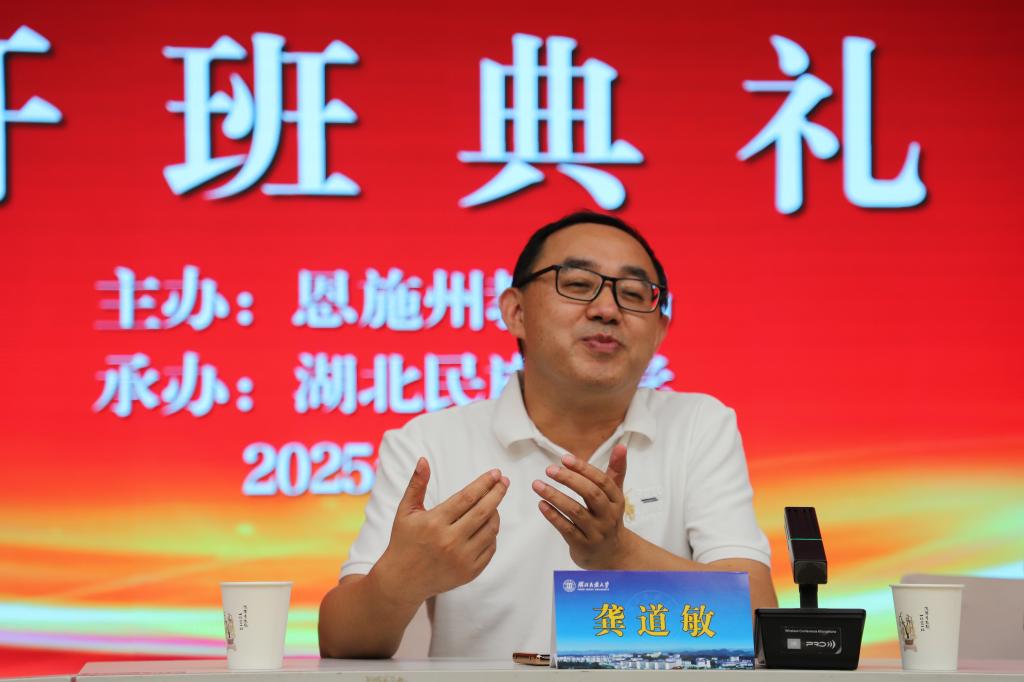 龚道敏在讲话中对参训学员提出三点要求:一是要明确目标,聚焦体育学科育人价值,深入思考 “以体育人” 在农村学校的落地路径;二是要勤于钻研,结合当地学情探索特色教学方法,如将恩施民族体育文化融入课堂;三是要学以致用,培训结束后需牵头开展校本教研,带动区域内体育教师共同成长。