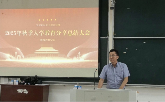 院长来国红代表继续教育学院,热情欢迎2025级新同学来校求学。他介绍了学校的办学历史与基本情况,随后就学习方法和学业规划给予了指导,期望大家成为有情怀的追梦者、有方法的实干家、有韧劲的奋斗者。