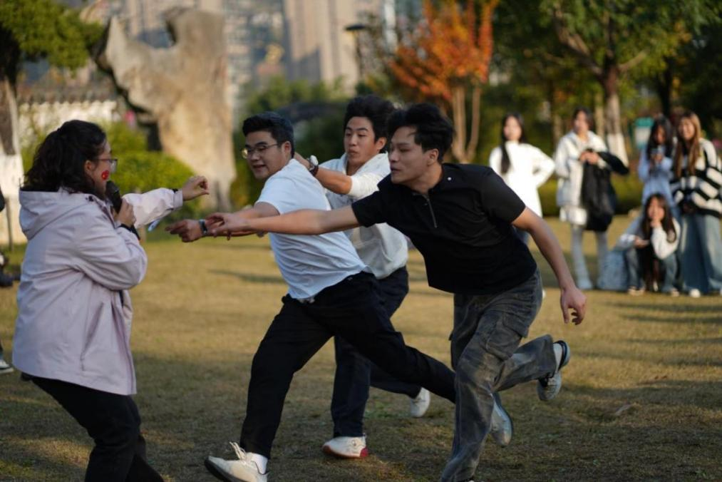活动开始之前,阳辉副院长发表简短致辞,强调此次远足实践活动不仅是一场亲近自然、强健体魄的户外体验,更是一次踏寻历史文化、践行红色精神、凝聚团队合力的实践课堂,希望大家在徒步中磨砺意志、增进情谊,将拼搏进取的精神融入日常学习与生活。随后,全体人员高举旗帜,向目的地出发。从武圣宫经老城门到文昌祠,沿途的石板路覆盖着薄薄的寒霜,师生们踩着清脆的脚步声前行,队伍中不时传来爽朗的笑声与互相鼓劲的话语。途经老街区时,斑驳的砖墙与古旧的木窗棂仿佛在诉说着过往的岁月,同学们放慢脚步,认真聆听带队老师讲述当地的红色历史故事,那些发生在这片土地上的革命先辈事迹,让每个人的心中都涌起深深的敬意。在街道上,冬日的暖阳透过枝叶洒下斑驳光影,勾勒出一幅静谧优美的自然画卷。大家三五成群,畅谈生活趣事,驻足欣赏沿途美景,欢声笑语萦绕在街道中。