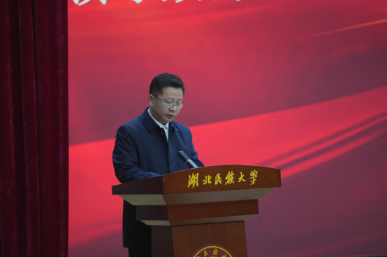 来国红院长指出,学院始终围绕立德树人根本任务,大力弘扬优良学风,努力营造奋发向上的育人氛围。他强调,此次表彰大会不仅是对获奖学生过去一年辛勤付出与优异成绩的肯定,更是为了树立先进典型,激励全体同学以榜样为镜,在求学道路上坚定信念、勤奋进取。他认为,有的同学在求知的道路上锐意进取,有的同学在服务集体中展现青春风采,还有的同学在自考的征程中实现了自我超越。作为民大学子,我们要牢记“博学、博爱、立人、达人”的校训,以坚定的理想信念筑牢精神之基,以扎实的学识本领锤炼过硬技能,以不懈的奋斗姿态书写无悔青春。他希望大家能做“青春向党”的追梦者、“躬身实践”的奋斗者、“崇德向善”的示范者。石嘉志书记提到,每一份成绩的取得都离不开同学们的勤奋刻苦与老师们的悉心指导,希望受表彰的同学珍惜荣誉、再接再厉,充分发挥模范带头作用,未受表彰的同学也要以榜样为镜,找准差距、奋起直追,在未来的学习和生活中绽放属于自己的光彩。随后,张建华副院长依次宣读了各类表彰决定,介绍了获奖个人与集体的先进事迹及其表彰的深远意义。