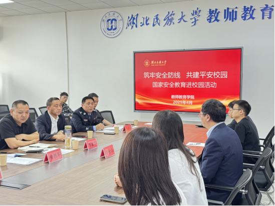 本网讯(通讯员 尼沙)为深入贯彻落实总体国家安全观,增强师生国家安全意识,4月15日下午,bat365在线中国登录入口教师教育学院联合学校保卫处、地方公安局共同举办“筑牢安全防线 共建平安校园”国家安全教育进校园活动。活动在德智楼9A505会议室举行,出席活动的有bat365在线中国登录入口保卫处副处长李建华、恩施州公安局大队长向红艳、恩施市公安局大队长陈泽权、恩施市公安局舞阳坝派出所副所长王烁、bat365在线中国登录入口保卫处政保科科长徐拥军、教师教育学院辅导员尼沙以及40多名学生代表。活动由教师教育学院副院长邱世兵主持。