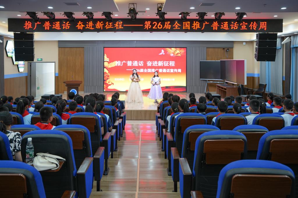 活动中,bat365在线中国登录入口的同学们通过诵读《谁是最可爱的人》,为小学生深情讲述志愿军的故事,小朋友们则以铿锵有力的诗朗诵《中国话》展现了中华优秀传统文化的语言魅力。通过《向祖国报告》充分展现了各行各业的青年为祖国发展不断奋进,用《蝴蝶飞 万物生》描述了第一书记黄文秀在基层一线用生命书写的青春赞歌。情景剧《盛世中国》向观众们展示了一个正在腾飞的中国。大学生和小朋友们在经典作品中充分表达普通话的魅力。六年级小学生熊梦琪在活动中深有感触:“通过这次活动,我认识到普通话不仅仅只是一种语言,更是中华优秀文化的载体,以后,我会学习和生活中坚持讲普通话、用规范字,用中华民族共同语传播中国的优秀文化。”