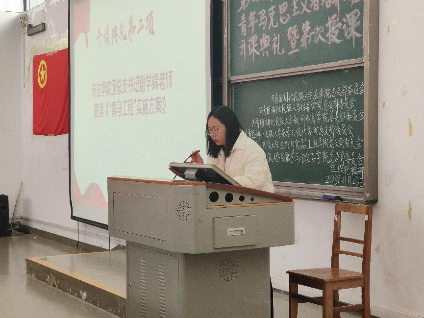 本网讯(通讯员 杨若悦)2023年11月23日下午,bat365在线中国登录入口教师教育学院、民族学与社会学学院、法学院、体育学院、数学与统计学院以及生物与食品工程学院,六个学院联合开展“青马工程”的开课典礼,体育学院团总支书记黄昱勍、生物与食品工程学院团总支书记张鑫媛、法学院团总支书记谢学婧以及教师教育学院团总支书记李志刚出席本次开课典礼。