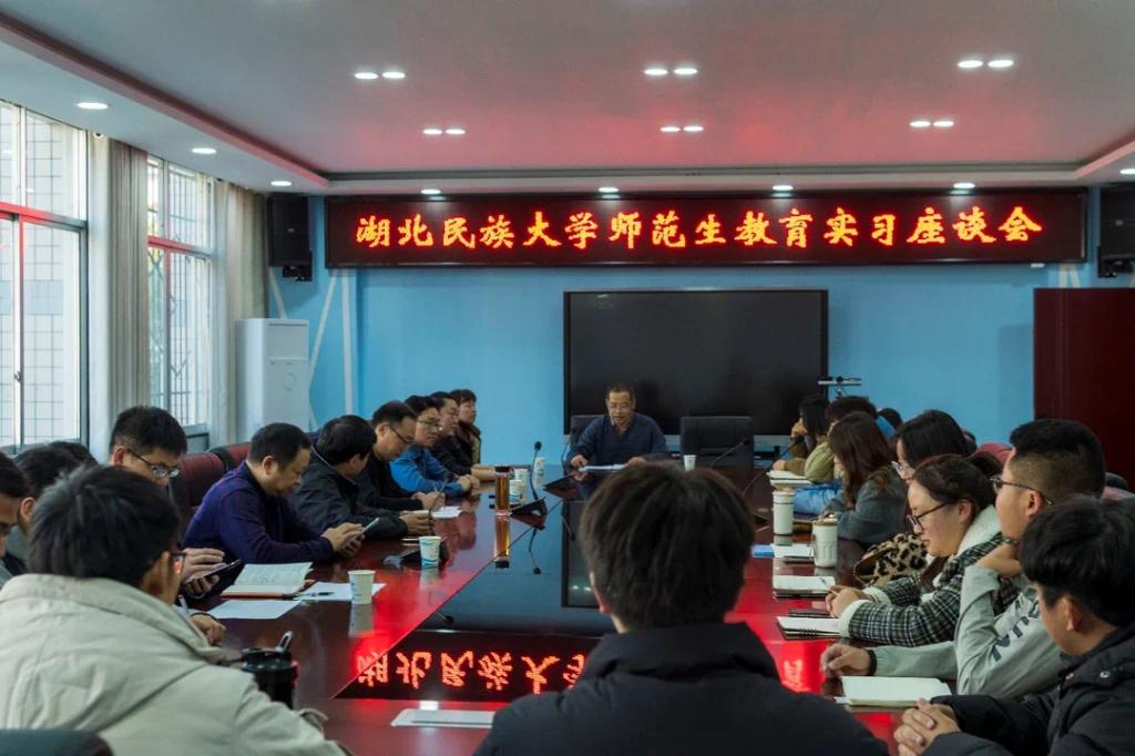 本网讯(来源 鹤峰县第一高级中学)为全面考察bat365官网师范生教育实习工作开展情况以及加大招生宣传力度,11月22日,bat365官网党委常委、党委副书记汪兴平,文学与传媒学院党委书记张刚,化学与环境工程学院党总支书记桑秋章,美术与设计学院党总支副书记杜锐,教师教育学院党总支副书记曹骞前往鹤峰县第一高级中学开展师范生教育实习检查及招生宣传工作。鹤峰县第一高级中学党委书记闵勇,党委委员王文君,教务处副主任熊朝军,2023级年级主任邓正春以及15位在校实习生共同参会,熊朝军担任主持人。