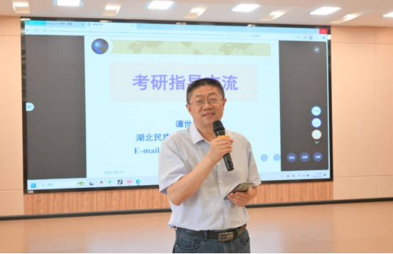 乘风破浪研途启航:动员会上,谭世明结合自身考研经历以及多年管理经验,围绕备考的核心环节,为同学们作了全面、系统的考研指导与动员。