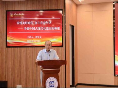 主讲人谭学文以“珍惜美好时代 奋斗青春年华——争做中国式现代化建设的栋梁”为题进行分享。他结合时代背景与青年使命,激励同学们珍惜宝贵时光,将个人理想主动融入国家发展大局,以昂扬的奋斗姿态书写无悔青春,努力成长为建设中国式现代化的栋梁之材。