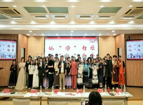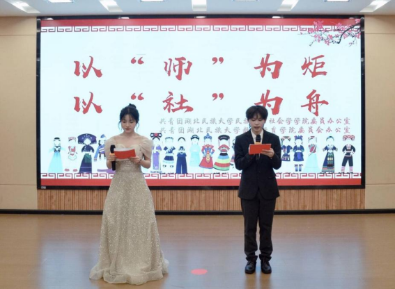 本网讯(通讯员 齐艳茜 梁玉琴 邓玉权)4月12日晚,教师教育学院联合民族学与社会学学院举办的“以‘师’为炬,以‘社’为舟”团支部风采大赛在德智楼远程观摩室圆满落幕。民族学与社会学学院团委书记杨国庆、教师教育学院团委书记周向伟,辅导员吴尚、尼沙、郑扬帆、吾卜力出席活动并担任评委。