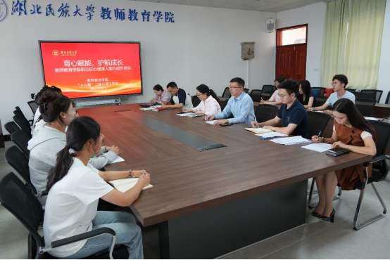 本网讯(通讯员 胡聪颖)为进一步加强学生心理健康教育工作,提升班主任、辅导员以及学生干部队伍心理育人水平,5月18日下午,教师教育学院在9A505会议室举办以"育心赋能,护航成长"为主题的心理育人能力提升专题培训。湖北省高校心理健康专家服务队成员、恩施州心理咨询师协会常务理事、bat365在线中国登录入口心理健康教育中心朱慧老师应邀担任主讲,全体班主任、辅导员及各班级心理健康委员参加培训。本次培训会由学院党总支副书记曹骞主持。