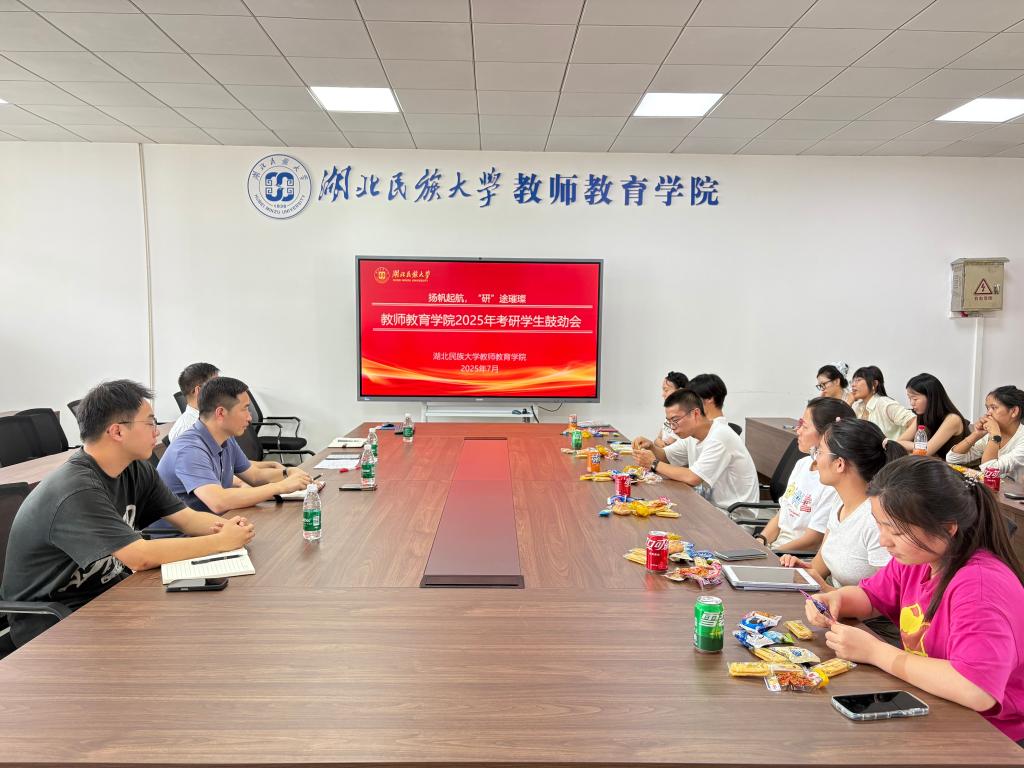 本网讯(通讯员 陈国旭)7月15日下午,教师教育学院在9A505会议室召开2025年考研学生鼓劲会。学院党总支书记宁华宗、党总支副书记曹骞、辅导员李志刚、陈国旭出席会议,为全力备考研究生的学子们加油鼓劲。