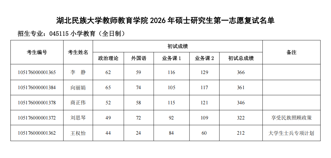 bat365在线中国登录入口教师教育学院2026年硕士研究生第一志愿复试名单